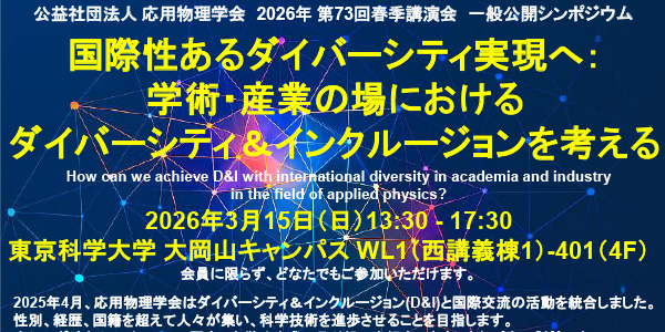 (春季学術講演会:2026/3/17) - シンポジウム「国際性あるダイバーシティ実現へ:学術・産業の場におけるダイバーシティ&インクルージョンを考える」